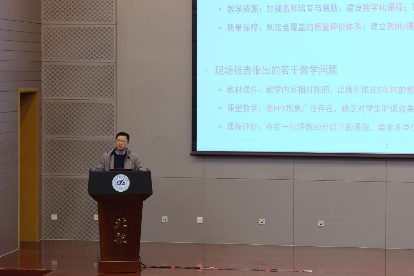 本科教学副院长高小鹏解读了学校本科教学的工作要点和报告中指出的若干教学问题,对学院本科教学的重点工作进行了全方面部署。