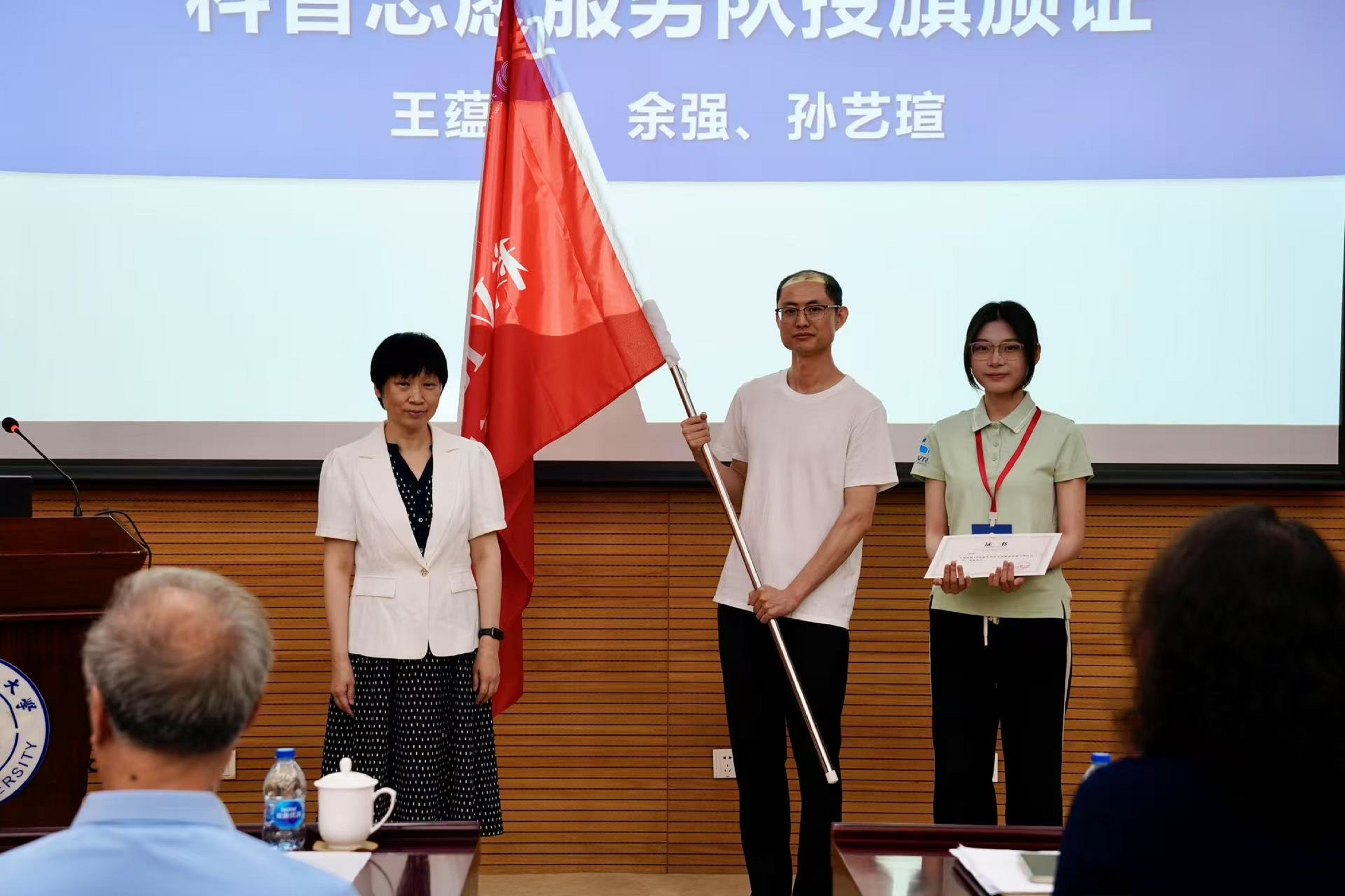 在庄严的授旗环节中,beat365中文官方网站院长王蕴红教授为科普志愿服务队授旗并颁发证书,标志着这支年轻队伍正式肩负起科学普及的使命。
