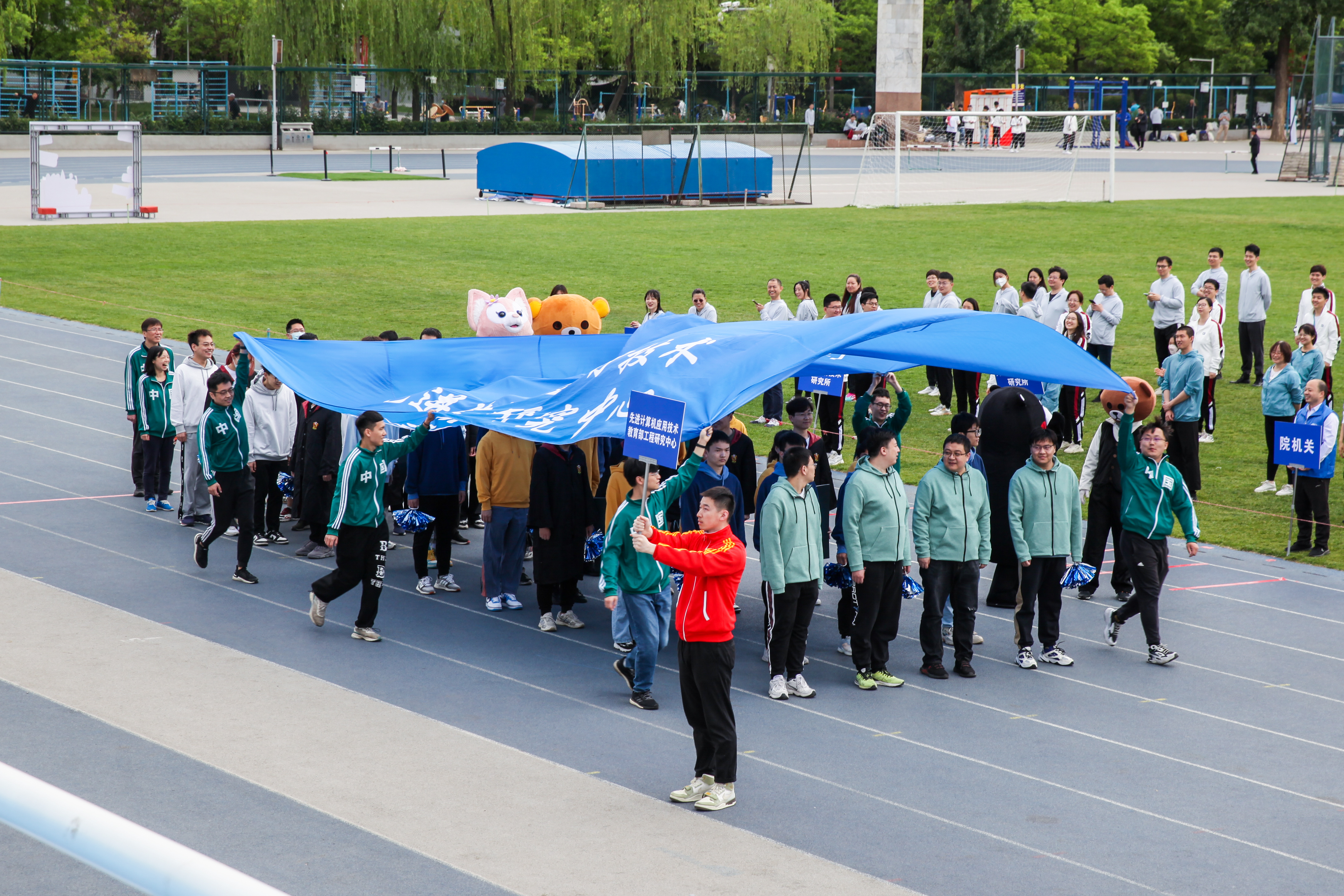 本次运动会,学院共有院机关代表队、虚拟现实技术与系统全国重点实验室代表队、复杂关键软件环境全国重点实验室代表队、中德联合软件研究所代表队、智能信息处理研究所代表队、网络与数字媒体研究所代表队、软件工程研究所代表队、系统结构研究所代表队、计算机教学实验中心代表队、先进计算机应用技术教育部工程研究中心代表队、计算机新技术研究所代表队等11支代表队参加。