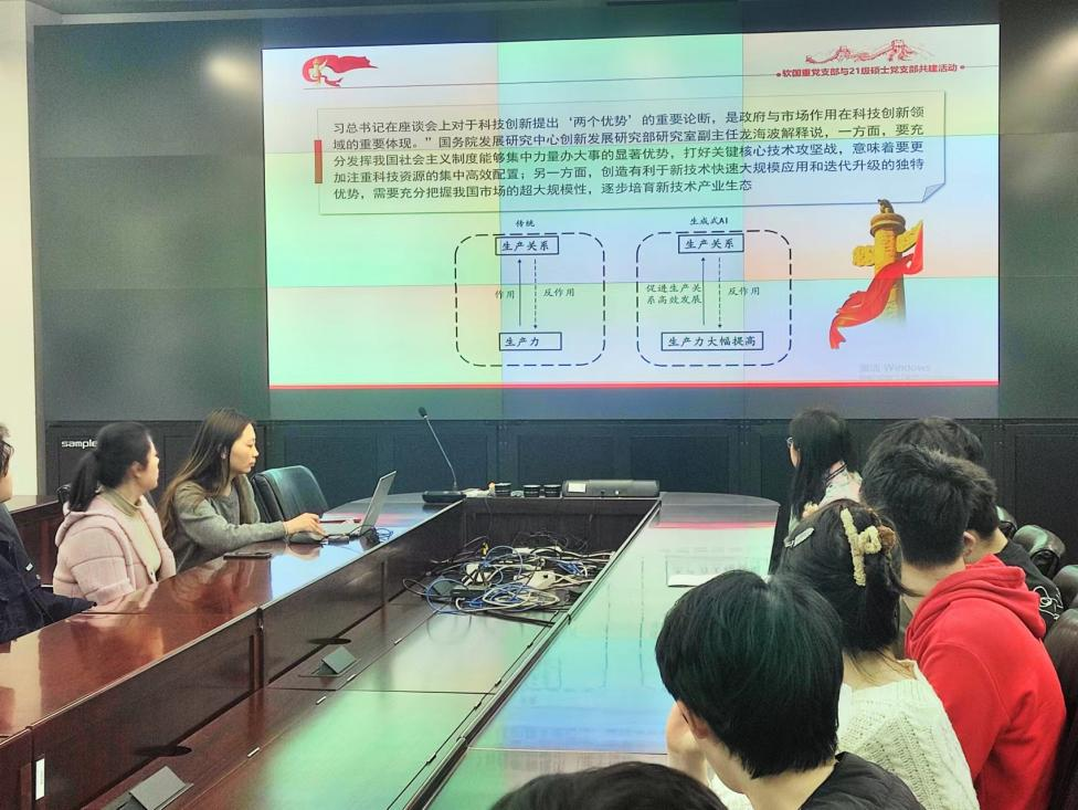 为深入学习贯彻党的二十大精神,积极推动学院研究生党支部之间的交流与学习,2023年4月6日下午,北航beat365中文官方网站软国重党支部和硕21062学生党支部于新主楼G610会议室开展了题为“党建与学术共生,理论与实践融合”的联建活动。本次活动旨在探讨人工智能技术对高校党建工作的赋能作用,促进党建与学术的相互促进、相互提高。